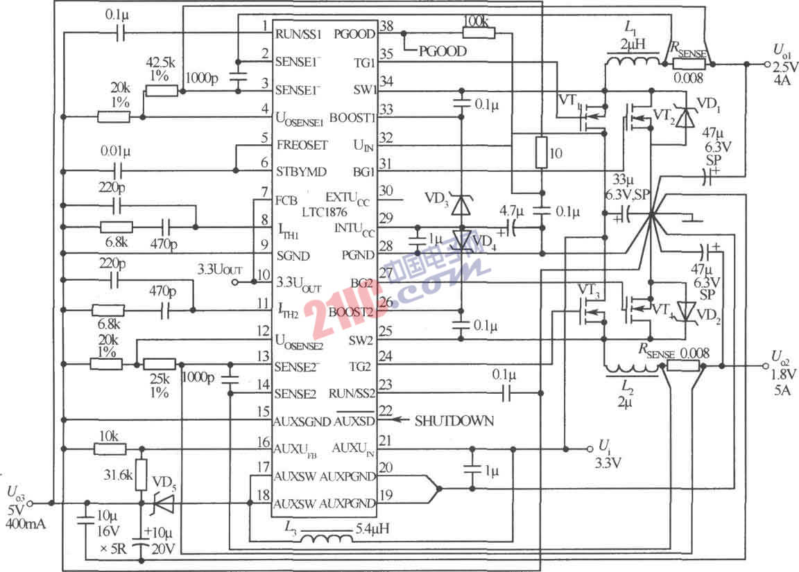 1.8V,2.5V和5V三输出直流稳压电源电路