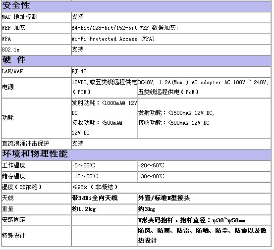 8、多重安全措施:支持64bit/128/152bit WEP加密、802.1x、WPA、MAC地址过滤等多种安全方式;