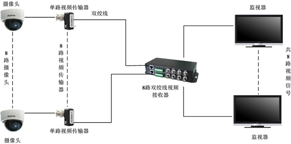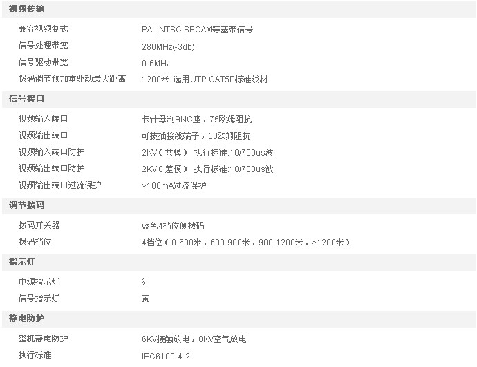 1)传输距离远、传输质量高。由于在双绞线收发器中采用了先进的处理技术,极好地补偿了双绞线对视频信号幅度的衰减以及不同频率间的衰减差,保持了原始图象的亮度和色彩以及实时性,在传输距离达到1km或更远时,图象信号基本无失真。