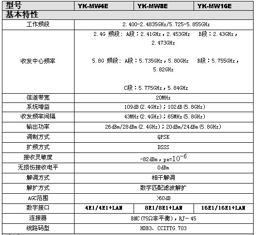 现有的扩频微波,速率为64kb/s~8Mb/s,可传1~120路(PCM)语音。特别是E1、2×E1和4×E1可取代常规的30路、60路和120路中小容量微波,抗干扰性极强,误码率可低到10-10(10的负10次方)量级,准光纤水平。时分双工(TDD)E1,距离近些;频分双工(FDD)E1,距离还可远些,在视距通信范围扩频微波可取代超短波(VHF/UHF)、常规小微波,以及电缆和光纤。它可以单独或与各种复用设备结合,用于卫星通信最后“一公里”、局间中继、GMS系统基站到交换机间通信等很多场合。
