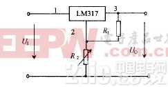 在该公式中,参数U3为LM317的3脚电压;Uo为输出电压,参数UD为二极管D的正向压降,即为补偿电压,其值略大于LM317的基准电压1.25V。在这一电压补偿电路的设计过程中,我们选择使用3只串联的锗材料整流二极管的导通压降来实现。当调节R2减少,使U3达到与UD相等时,输出电压即为0V。当调节R2逐渐增大时,Uo即由0V开始增大。由于负载电流流过D,故D的最大工作电流应能适应负载电流的要求。下图中,图1是本文设计的稳压电源主电路图,图2是输出电压调节原理图,图2中R4用于给D提供工作电流。