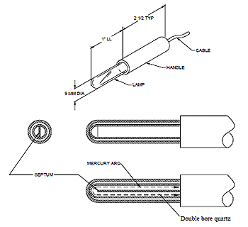 图1为低压汞灯的一般结构图。其中,水银被封入石英管内。