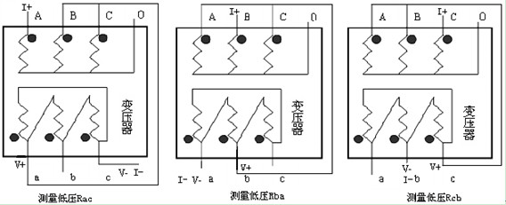 注:在使用本仪器对有中性点引出的三相变压器进行三相同时测试时,请先用本仪器的单相测试功能对变压器绕组分相测试一次。测试所得的电阻值应和出厂值进行比较,以确定变压器的中性点引出线与中性点套管连接可靠!