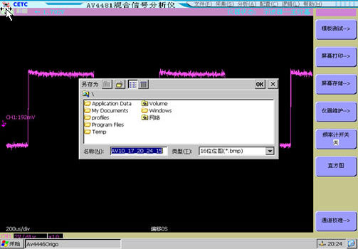 除可以进行设置存储和波形存储外,AV4481还可以轻松完成屏幕存储,存储的屏幕图片可以通过USB接口拷贝到移动存储介质,或通过以太网接口传输到PC用于用户报表。