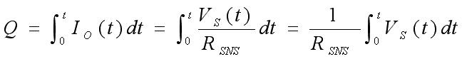 净电荷量由S位确定。若满偏值F为±204.84mVh,则LSB为±6.25μVh;RSNS为10mΩ时最大电量为±20.48Ah。若M为7680,则实际电量为:
