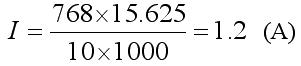 电流方向由S位确定。若满偏值F为±64mV,则LSB为±15.625μV;RSNS为10mΩ时最大电流为±6.4A。若M为768,则实际电流为: