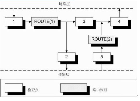 建立规则并将链放在适当的位置之后,就可以开始进行真正的信息包过滤工作了。这时内核空间从用户空间接管工作。当信息包到达防火墙时,内核先检查信息包的头信息,尤其是信息包的目的地。我们将这个过程称为 路由。