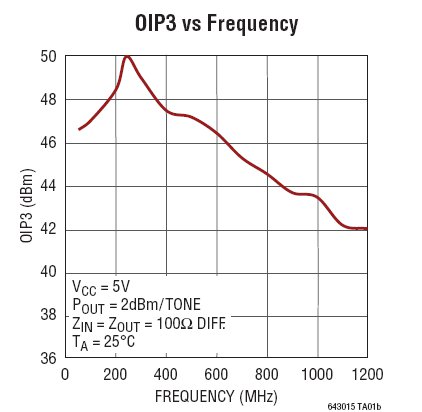 ·在 240MHz 时具有 50.0dBm OIP3 (驱动一个 100Ω 差分负载)