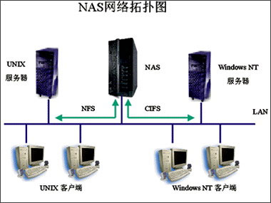 (1)NAS设备是作为单独的文件服务器存在的。网络中所有设备的大多数据均存储在NAS设备上。