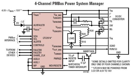 ·4个输出电压、4个输出电流、4个外部温度、输入电压和内部芯片温度的准确监视
