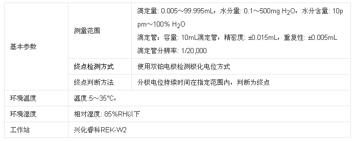 测量范围: 滴定量: 0.005~99.995mL,水份量: 0.1~500mgH2O,水份含量: 10ppm~100%H2O。