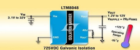 LTM8048 适合采用标准的表面贴装设备来进行自动化装配。其符合 RoHS 标准。仅需采用输出、输入和旁路电容器便可实现完整的设计。可以采用其他组件来管制软起动控制和偏置。这些精小和可靠的产品可调节工业,航空电子设备和仪器设备应用的接地回路。