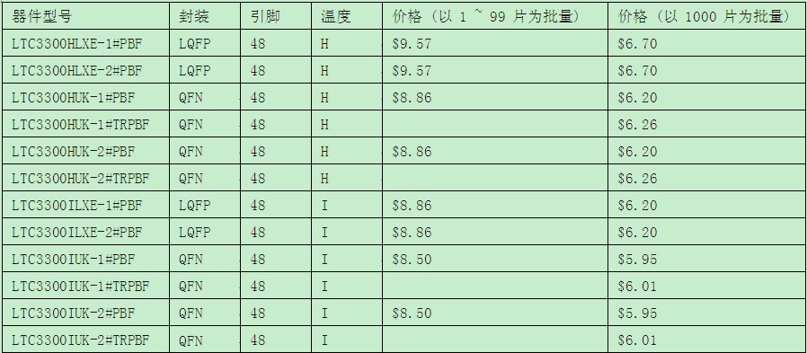 LTC2977是一款 4 通道电源系统管理器,用于排序、修整 (伺服)、裕度调节、监控、管理故障、提供远端采样和创建故障记录。PMBus 命令支持电源排序、精准负载点电压调节和裕度调节。DAC 采用一种专有软连接算法以最大限度地抑制电源扰动。监控功能包括针对 4 个电源输出通道的过流和欠流、电压和温度门限限值,以及针对单个电源输入通道上的过压和欠压门限限值。可编程故障响应能够利用 “在检测到故障之后执行重试操作” 的选项来停用电源。导致电源停用的故障会自动触发黑匣子 EEPROM 存储器记录故障状态及相关的远端采样。一个内部 16 位 ADC 负责监视 4 个输出电压、4 个输出电流、4 个外部温度、1 个输入电压和芯片温度。另外,还计算输出功率。一个可编程看门狗定时器用于监视微处理器运作的失速状态,并在必要时使微处理器复位。单线式总线可在多个 LTC 电源系统管理器件上实现同步。配置 EEPROM 支持自主型操作,并不需要额外的软件。