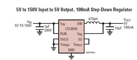 凭借其 4V 至 150V 的宽输入电压范围和可编程过压闭锁,LTC3639 成为了一款适合对多种电源实施稳压的坚固型转换器。此外,LTC3639 还具有一个精准的 RUN 引脚门限和软起动功能,旨在保证电源系统启动操作在任何环境中均处于良好受控的状态。一个反馈比较器输出允许在较高电流应用中将多个 LTC3639 并联起来使用。
