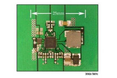 LT3692A TSSOP封装芯片的测量温度最高达80℃,当采用一个18V的输入电压且开关频率为400kHz时,两个输出均支持3A负载(在5V和3.3V)。图1示出了测量应用电路的原理图。但对于2.5A负载来说,采用相同的设置时最大芯片温度下降至68℃。