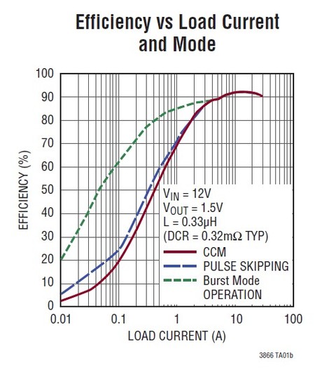 LTC3866以最大限度地提高在高电流应用中的效率,此特性还可降低在低DCR应用中普遍存在的开关抖动。另外,LTC3866还内置高速远程感应差分放大器、可编程电流感应限值(可选择 10 mV、15 mV、20 mV、25 mV 或 30 mV)以及DCR温度补偿功能电路,旨在不同温度下精确限制最大输出电流。
