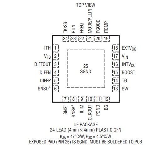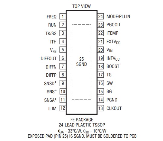LTC3866在-40°C至125°C的节温范围内工作,采用耐热增强型4mm x 4mm QFN-24和24引脚裸露衬垫FE封装TSSOP-24E封装。