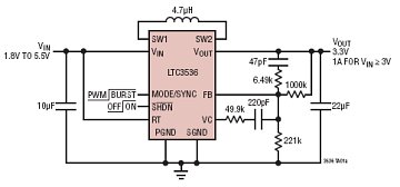 图1图2:同步降压/升压型转换器LTC3536应用