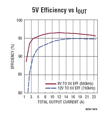效率更高、VOUT 范围更宽 (与 LTM4620 相比)