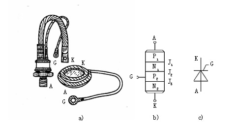 按封装结构分,有塑封、陶瓷封装、带或不带散热片封装、金属封装。 按功率分,有小功率、中功率、和大功率。 中、小功率的有TO-92、TO-126、TO-220等塑封或陶瓷封装,圆壳形金属封装。 大功率的有螺栓型、平板型、圆壳型等,螺栓型的螺栓一端是阳极A(还用于固定散热器),另一端粗引线是阴极K、细引线是门极G