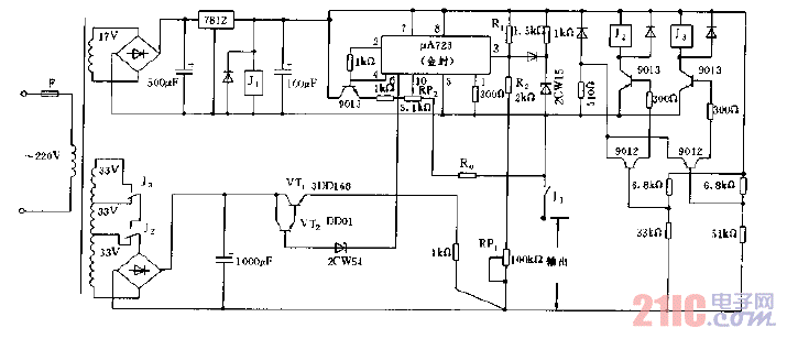 采用μA723构成的实用稳压电源电路图