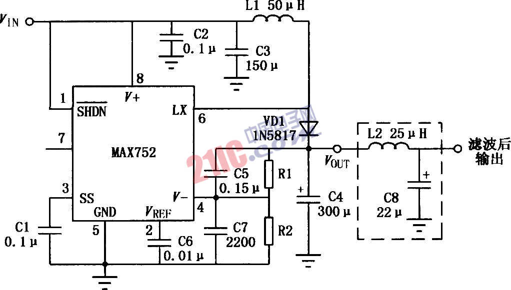 MAX752升压开关型DC-DC变换器的典型应用电路