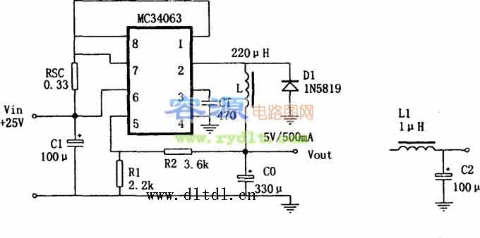 采用内部RSENSE和LT3975降压型稳压器的LT6110(在3.3V)