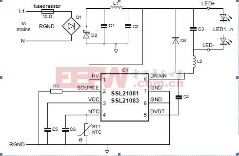 采用内部RSENSE和LT3975降压型稳压器的LT6110(在3.3V)