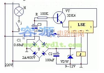 一款延时关灯器原理电路图