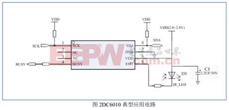 DC6010的典型应用电路简单可靠,芯片外围电路只需接一个红外二极管D1,一个电容,四个电阻。