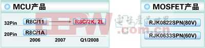 7 用于电动自行车的MOSFET和R8C/11 MCU系统结构框 。