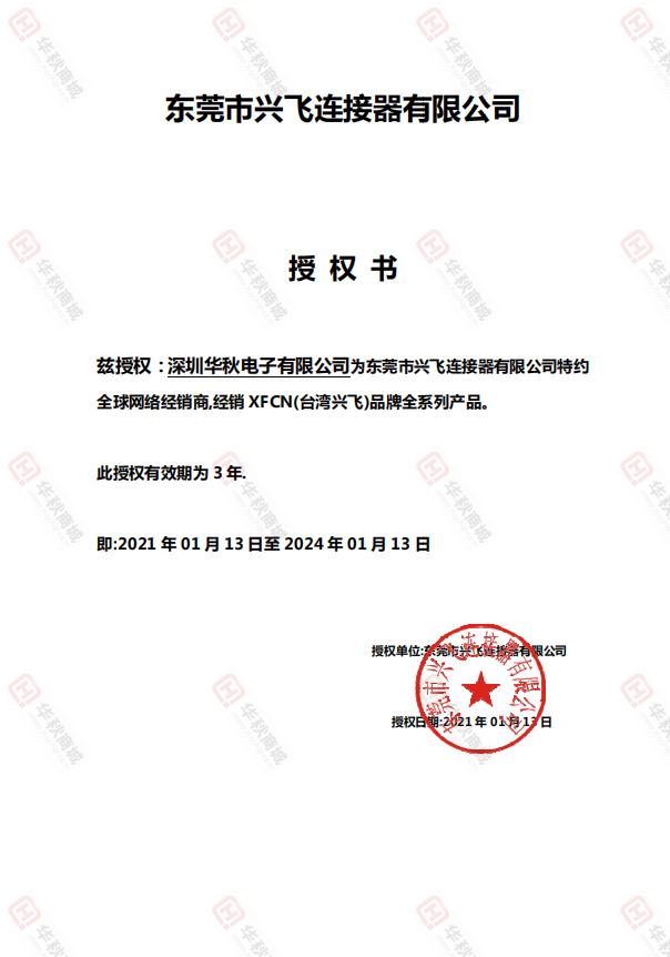 兴飞以“ XFCN”自有品牌创立于2003年,致力各式电子及电脑连接器设计制造,经多年努力改革、创新、研发,已多项产品获得UL、CSA、TUV及发明专利等认证。 我们不仅有完善的设计开发管理体系,并拥有精密模具制造、高速连续冲压、塑胶成型及自动化设备,并引进高精密实验设备及量测仪器,秉持以技术创新为主导,不断推出高新技术、高质量的产品,严格并落实ISO质量保证体系,成为绩优ISO 9001,ISO14001和OHSAS 18001,IATF16949连接器制造商。